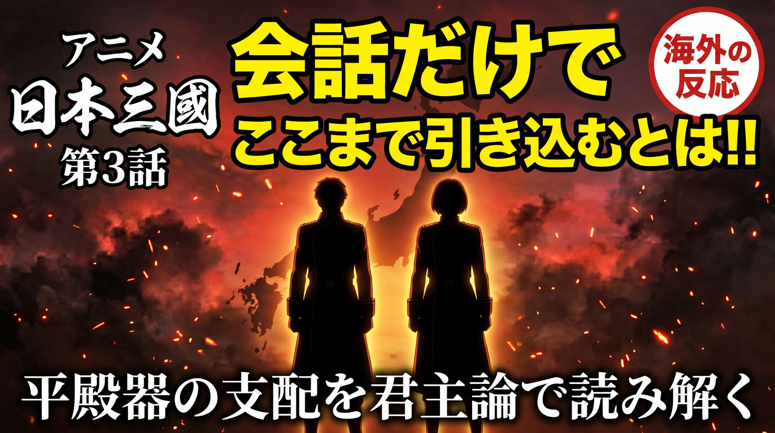 2026年冬アニメの中でも異彩を放つ作品『日本三國』。 第3話では、平殿器の圧倒的な権力掌握、三角の見事な外交戦略、そして龍門将軍の老獪な立ち回りが描かれました。 「会話だけでここまで視聴者を引き込めるのがすごい‼」そんな声が海外のアニメコミュニティで飛び交っています。